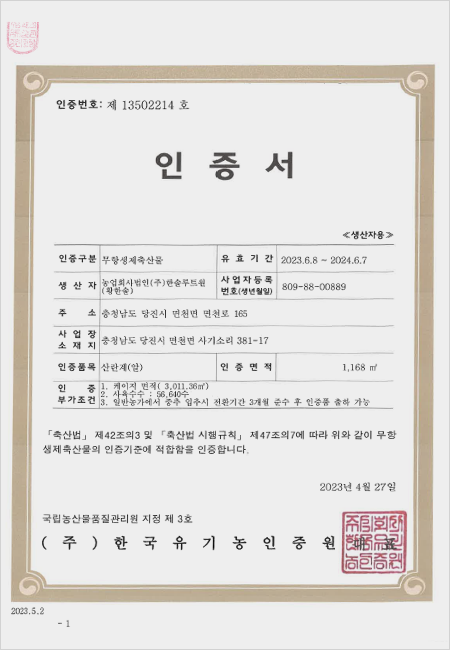 "솔리뮨" 충청남도 보조사료제 등록 완료