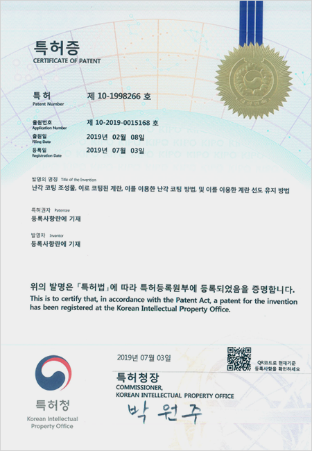 살모넬라균 제거기술 특허 등록