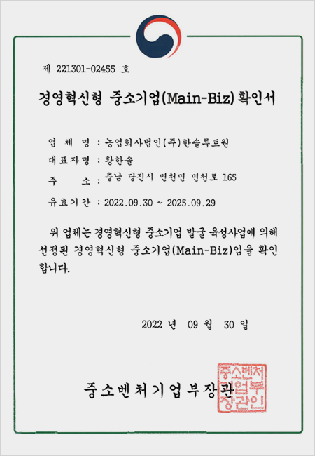 2022 경영혁신형 중소기업인증서