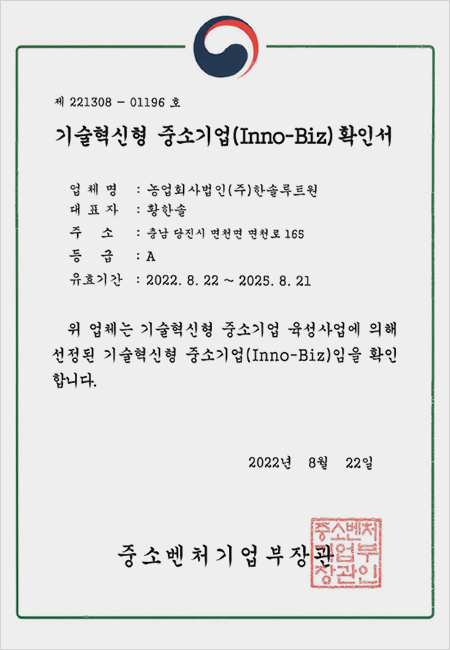 2022 기술혁신형 중소기업인증서